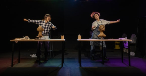 연극 <어슬렁>은 코로나19로 인해 휴강이 된 줄 모르고 학원에 온 두 사람이