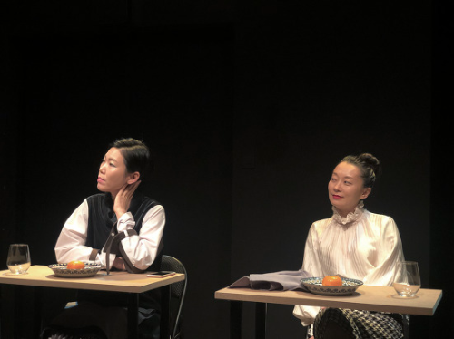 카페 테이블이라고 설정된 곳에 관객을 바라보고 나란히 앉은 지원과 선주,