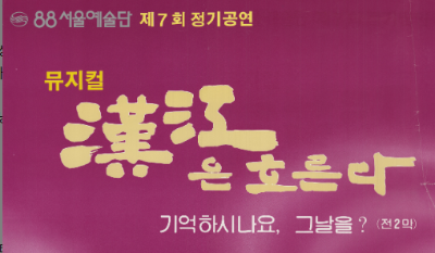 동강난 혈육의 한을 뮤지컬로 88서울예술단은 1990년, 6․25 40주년과 보훈의 달을 맞아 정기공연작품을 <기억하시나요, 그 날을: 漢江은 흐른다>로 선정하고 전국 순회공연에 들어갔다. 부산공연은 당시의 처절했던 피난시절을 되새긴다는 의미에서 25일 당일 부산문화회관 무대를 장식한다. 국수호 감독은 “정기공연에 새로운 작품을 선보이지 않고 공연을 하는 이유는 많은 제작비를 투입해 어렵게 탄생한 작품을 다듬어 창조하는 것이 우리 88서울예술단의 사회적 책임이라고 느꼈기 때문”이라고 밝혔다. 연출을 맡은 김우옥 교수(서울예전)는 “6․25의 한강이 빈곤과 비참의 상징이었다면 오늘의 한강은 풍요와 번영의 상징으로 변화했지만 한강의 번영 속에는 아직도 6․25 때 한강으로 인해 헤어진 이산가족, 우리 민족 분단의 아픔이 남아 있음을 가벼운 뮤지컬 양식을 통해 역설적으로 표현하고 싶다.”고 말하고 있다.