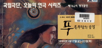 국립극단 측으로부터 공연 계획에 대한 이야기를 듣고 희곡 <푸른 무덤의 숨결>을 다시 꺼내든 것은 지난여름의 일이었다. 쓰인지 3년만의 일이었고, 그만큼 새삼스런 느낌이었다. 수정작업을 거치는 동안, 낡은 옷을 끌어안고 헤진 데만 골라 깁는다기 보다는 아예 헌 털옷의 실을 모두 풀어 새로 떠 나 간다는 심정이었지만, 결국 수상 당시의 원고에서 크게 달라지지 않은 공연본을 내놓게 되었다. 이 희곡을 썼던 91년만 해도, 페미니즘 계열의 창작물들이 지금처럼 풍성히 쏟아져 나오진 않던 때였고, 80년대를 돌아보는 후일담 문학 등이 제몫을 해내기에 때이른 시기였다. 요 몇년 사이 문학을 비롯한 여러 창작 분야에서 이 두 가지 경향이 유행처럼 번진 탓인지, 오랜만에 꺼내든 묵은 원고는 이 유행에 적당히 양다리를 걸치고 있는 것처럼 보이기도 했다. 이를테면 보도기사처럼 시의성이 문제되는 셈 인데, 이 부분에 대해서 본인이 다소 염려하는 기색을 보이자 연출자 박상현씨께서 격려의 말씀을 해주셨다. 소재가 무엇이든 표현의 방식은 전혀 새롭게 찾아낼 수 있고, 그 결과 '초유의 주제의식' 을 드러낼 수도 있다고.