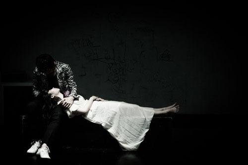 잠들게 한다. 어둠속 에서 왕과 왕비가 독약을 들고 나타나 선왕의 귀에 흘려넣는데