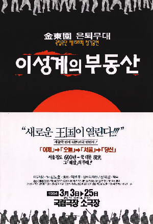 이성계가 서울로 천도함으로써 조선조 최초의 부동산 투기자가 된 것을 연극제목으로