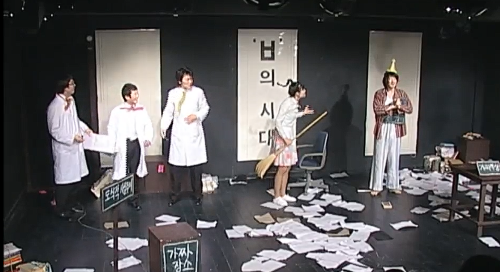 <알마의 즉흥극>은 몰리에르의 고전희극과 브레히트의 서사극 기법을 부분적으로