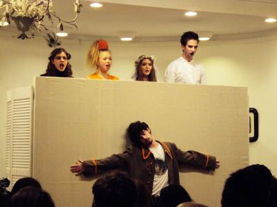 갑자기 이오네스코는 관객들을 향해 연극이 끝났음을 알리고, 무대 위에서 벌어진