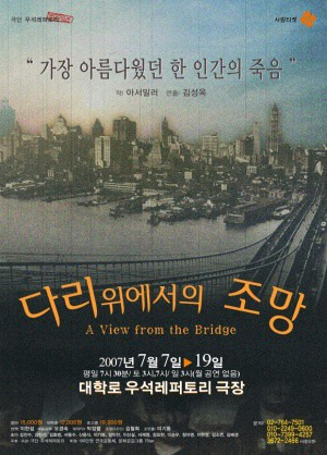 멜로 드라마적인 요소를 부각시키기위해 에디와 캐서린, 로돌프의 삼각관계를 중심으로 스토리가 전개된다 하더라도 그 이면에 깔려 있는 아서 밀러의 사회성과 도덕성에 관한 문제의식을 읽어 보는 것도 연극을 보는 하나의 재미가 될듯하다. 에디의 근친 상간적 욕망과 이를 지키기 위한 괴팍한 성격 변화, 그리고 자기합리화로 치닫는 마음의 갈등이 작가의 세밀한 터치로 표현된 수작이라 하겠다. 밀러는 불신과 폭력과 복수가 만연하는 사회에 맞서 타자에 대한 믿음, 배려, 용서의 정신을 대치시킨다. 불법이민자라는 약자의 위치에 선 타자, 연민이 필요한 타자, 궁지에 몰린 타자에게 시선을 돌려 다원화된 사회에서의 타자의 문제에 초점을 맞춘다. 또 이 극에서 밀러는 에디의 근친상간적인 성적 집착과 밀입국자들인 로돌포와 마르코와의 관계를 통해 동일성의 폭력 문제와 타자의 망각에 초점을 맞추고 있다. 밀러는 이들의 관계를 통해 주체가 자신의 시선에서 타자를 판단하고 심판하며, 자신에게 동일화하지 않는 타자를 제거하려 하는 현실세계의 실상을 문제 삼는다. 밀러는 에디의 왜곡된 성적 자기애를 단초로 삼아 한 인간이 타자를 포용의 대상이 아닌 배제의 대상으로 만들어 나가는 과정을 보여주고 있다. 그는 타자를 동일화 시키고자 하는 폭력성을 윤리의식과 책임의식의 결여로 보고 인간의 비극을 심화시키는 심각한 사태로 규정한다. 밀러는 극의 기능을 관객 자신이 타자와의 상호성이라는 계시에 의하여 타자를 어루만질 수 있도록 자각시키는 것으로 본다. 산업화된 자본주의 사회의 단절된 인간관계와 인간 소외를 극복하는 길은 오로지 타인에 대한 사랑과 사회에 대한 책임을 통해서 해결될 수 있다고 보는 것이다. 밀러는 현대 사회가 타자와의 상호적인 윤리적 관계에 기반을 두지 않으면, 타자의 인간적 존엄성을 인정하지 않는다면 점점 더 폭력적이고 비인간적인 사회로 전락하게 될 것이라고 경고한다. 마찬가지로 레비나스도 우리 사회가 타자와의 윤리적 관계를 회복하지 않으면 현시대는 심각한 위기에 처하게 될 것이라 진단했다. 20세기에 들어서서 제2차 세계대전과 나치의 파시즘과 홀로코스트 등과 같은 역사적 사건들을 직접 체험한 양자는 타자를 군중 속의 익명적 존재로서 망각해버리는 동일성의 폭력성에 대해 극히 경계했다.