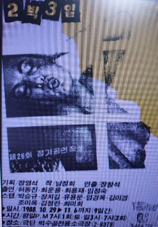 무대는 콘도미니엄 거실. 레저용품 회사 사장인 주배신과 임시비서직인 나가린이 2박3일간 여기에 묵으면서 시작된다. 사장과 여대생인 비서와의 여행... 불륜과 그 대가로 돈을 받는 관계로 연상이 되는 관계인데 잠시 사장이 외출나간 사이 하이걸이란 젊은 청년이 자신이 이 방을 배정받았다며 들어오고 실랑이가 오고가는 사이에 주사장의 부인이 들어오면서 이야기는 혼란스럽게 된다. 임기응변으로 하이걸은 신혼부부인 것처럼 행세하여 나가린과 투숙했으니 나가라며 부인을 쫓아내고 다음날 주배신이 있을 때 하이걸이 들어와 주먹 다툼이 벌어진다. 결국 주배신은 나가린과 같이 있는 걸 부인에게 들켜 곤혹스럽게 됐을 때 다시 하이걸이 등장해서 신혼부부처럼 행세해서 사건을 해결하려 하나 나가린이 나서며 주배신은 자기 부친의 원수라며 과거 얘기를 털어 놓는데.... 한 회사의 경리사원으로 입사해 경리부장이 되기까지 그 회사에서 특히 사장(나가린의 부친)이 잘 이끌어 준 은혜에 배신을 하고 회사 돈을 빼돌려 결국 회사가 파산되게 하고 자신은 다른 회사를 차려 나가고 사장 (나가린의 부친)은 그 여파로 죽게 된 사연이다. 그리고 나가린과 하이걸은 이 콘도에 남아 서로 상하는 사이가 된 듯 하며 막을 내린다.