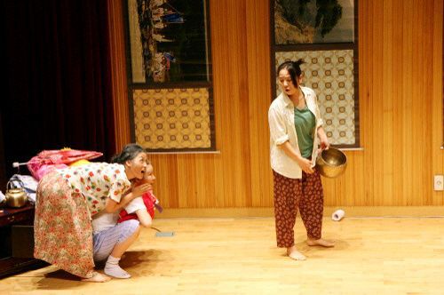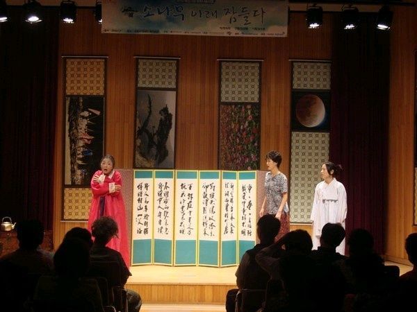 단순하고도 조촐한 무대를 모두 상쇄시킬 정도로 배우들의 연기는 너나 할 것 없이, 너무나 뛰어났고, 자연스러웠으며, 조화를 이루었다. 물론, 순간순간의 아쉬움들이 있긴 했지만, 연극이 아닌 실제의 삶을 보는 것과 같은 착각에 빠질 정도로 자연스러움이 배어있었다. 삶의 소소한 기쁨과 슬픔을 아주 능청스럽고 응집된 표정으로 보여주는 그들의 연기에 아주 감탄했다. 그래서 시어머니와 친정어머니가 정말로 어린아이처럼 티격태격할 때는 정말로 웃음이 나왔고, 그 웃음이 나를 너무 벅차게 하고, 결국 그 처연함에 내 눈에선 눈물이 주르륵 흘러내렸다. 한국의 전통적 인습 속에서 벗어나지 못하는 여인네들의 인고의 미, 흐르는 강물에도 의미가 있음조차 묻지 않고 운명에 순종하는 모습, 크진 않지만 일상 속의 조촐한 행복에 만족하는 그들의 모습, 그러면서도 자신의 내면 속에서 꿈틀거리는 자아의 발현, 하지만 결국 나의 아픔과 상대방의 아픔이 하나라는 것을 깨닫게 되는 숭고한 미 등이, 그들의 표정에서, 몸짓에서, 울부짖음에 그대로 담겨 있었다. 늘 그 자리에 푸른 자태를 뽐내며 서 있는 변하지 않는 소나무! 계절이 흘러도 변함이 없는 모습, 그것이 바로 인간이 정말로 원하는 삶의 모습이 아닐까? 고통도 슬픔도 없는 삶, 바로 그것이다. 그래서 그 소나무를 향해 말을 걸고, 돌파구가 안 보이는 힘겨운 삶을 호소하는 순간, 이미 그 모든 힘겨움은 그 푸른 빛 속에 흡수되고...