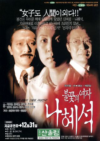 그렇다면 나혜석은 어떠한가. 그는 어떠한 인물이던가. 위의 어떤 이유로 무대 위에 오를 만하였던가. 유진월 작, 채윤일 연출로 극단 산울림 94회 정기공연으로 막이 열리고 있는<불꽃의 여자, 나혜석>은 과연 공연될 만한 삶을 지닌 인물인 것인가. 작가는 그렇다고 한다. 그 이유로 그는 '불꽃'을 말한다. 페미니즘의 불꽃을.