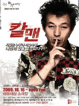 작가의 의욕만큼 연출도 많은 것을 보여 주려 애쓴다. 열악한 무대 조건을 적절히 이용하고 있으나, 식육점의 내부와 외부 통로를 연결해 주는 등퇴장에 일관성이 결여되고, 몇몇 칼부림을 위해 무대 후면을 깜깜한 사막(寫幕)으로 시종일관 비워 놓은 것은 리얼리즘 무대의 조화를 깨트린다. 작가의 메시지인 '사람은 누구나 가슴 속에 칼을 하나씩 품고 있다', '제 칼에 맞으면 죽기도 하고 살기도 한다.'는 화두가 그저 작가의 관념으로만 끝나 버리고 마는 것은 많은 사건들이 지나가 버리기만 하고 그림[畵]으로써 무대 위에 제대로 풀어지지 못한 까닭일 것이다. 진정 우두철이 '칼맨'인 이유는 칼을 잘 써서인가 쓰지 않아서인가. 고수는 쓰지 않아도 쓴 것과 같고, 써도 쓴 것 같지 않을 때가 아닌가. 불구가 된 딸의 비극을 감당하면서까지 '천검'을 간직하기만 하고 휘두르지 않는 면모는 진정 무림의 고수인 듯해 보이지만, '살기가 뻗친 칼 하나 있다'는 스님의 말 한 마디에 살의를 포기한 고수는 자기가 고수임을 다른 식으로 보여 주어야 할 듯하지 않을까. 관객들에게 보여 주는 다양한 팬 서비스는 즐겁다. 시종일관 웃으며, 마병태의 모험담에 함께 동참할 수 있는 무협지의 세계는 즐겁다. 그러나 진정 '칼맨'의 고수다움을 발견하지 못한 것은 평자만의 무감각 때문일까. 불현듯 소 몸뚱이 조직의 자연의 이치에 따라 칼을 움직이기 때문에 19년 동안 칼을 갈지 않으면서도 항상 새 칼처럼 칼을 놀린다는 {장자} 속의 도통한 백정 이야기와 결투에서 상대의 허벅지의 뼈가 앙상히 드러나도록 칼을 휘둘렀는데도 정작 쓰러지는 적장은 자신의 다리가 그 지경이 되는 지도 모르고 있었던 어느 중국 무협 영화[신용문객잔]의 한 장면이 생각나는 것은 어인 이유일까.