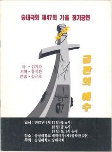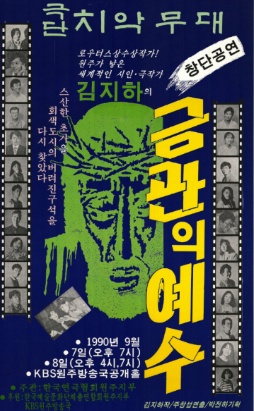 1970년, 당시 암울한 세상을 신랄하게 비꼰 ‘오적(五賊)’으로 수배생활을 하게 된 김지하가 이듬해인 1971년 도피 중 쓴 희곡의 제목이 그 유명한 ‘금관의 예수’다. 우리가 알고 있듯 예수는 금관을 쓴 적이 없다. 그는 로마와 예루살렘의 기득권층에 의해 세상의 모든 고통을 상징하는 가시면류관을 쓰고 십자가 위에 못 박혔다. 하지만 김지하가 본 한국 교회의 예수는 달랐다. 그는 우리 교회가, 우리 사회의 주류 기득권층이 시대의 아픔을 외면하고 자기 배불릴 생각에 급급한 나머지 예수의 머리에 황금면류관을 씌웠다고 생각했다. 가난한 자와 힘없는 자를 위해 제 몸 던진 예수와 달리 교회의 크기가 곧 믿음의 크기가 되어 버린 한국 교회, 그리고 어려움에 고통 받는 서민들의 입장이 아닌, 힘 있고 권력 있는 자들의 편에 선 한국 교회를 통렬하게 비판한 작품이 바로 ‘금관의 예수’였다. 40년에 가까운 세월이 지났지만 이 작품이 오래오래 기억되고 회자되는 많은 이유는, 당시와 크게 달라지지 않은 현실 때문이기도 하지만 김민기가 부른 같은 제목의 노래 ‘금관의 예수’가 기여한 바도 크다. 작품의 도입부에 등장하는 시를 발췌해 곡을 붙인 ‘금관의 예수’는 시대를 꿰뚫는 탁월한 가사와 그 내용을 더욱 돋보이게 한 김민기의 작곡 능력으로 많은 이들의 심금을 울렸다. 다른 김민기의 노래들과 마찬가지로 방송에선 절대 들을 수 없었던 이른바 ‘방송금지곡’이었지만 알게 모르게 입에서 입으로 전해지며 유명해진 곡이 바로 ‘금관의 예수’였다.
