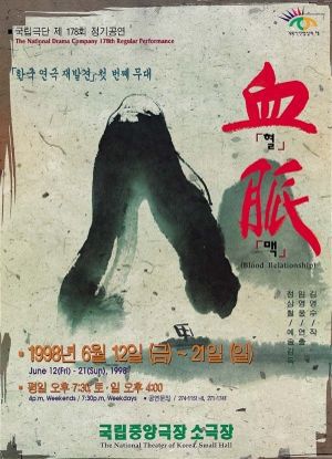 극단'신청년'에게 1등상을 안겨준 작가 김영수의 대표작이다. 혈맥은 광복후 어려웠던 현실을 당시 사람들이 복합적인 심리와 그늘진 삶, 가치관의 혼돈, 시대의 모순과 구조적 부조리 등을 통해 민족에게 희망과 꿈을 제시해 준다. 각양각색의 등장인물은 진솔한 삶을 통하여 절망을 딛고 미래를 지향하며, 작가 또한 이 작품을 통해 현실주의자와 이상주의자를 동시에 등장시켜 절망속에서도 언제나 희망의 빛을 주는 의미를 담고 있다
