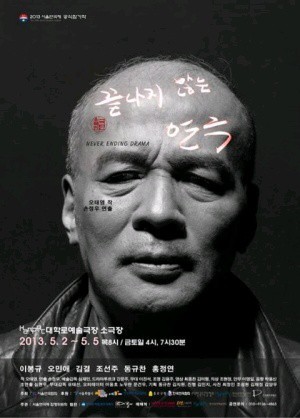 '끝나지 않는 연극' 은 분단 후 지속되고 있는 연좌제를 다룬다. 극 주인공인 연조는 월북한 아버지와 형으로 인해 평생을 빨갱이 자식이라는 죄의식 속에 하루를 산다.