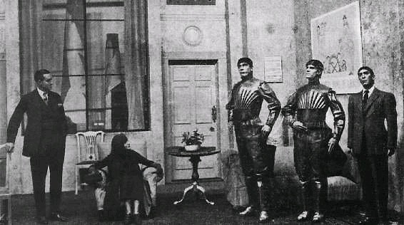 로봇이라는 단어가 카렐 차펙의 형인 요제프 차펙(Joseph Capek)에 의해 주창되기는 했으나, 카렐 차펙에 의해서 비로소 로봇으로 명명된 배우들이 무대 위에서 연기를 펼치게 되었다. 1921년 초연 당시 카렐 차펙은 실제 로봇, 그러니까 기계적으로 움직이는 모형을 직접 사용한 것은 아니었다. 작품 속 로봇은 순전히 그의 상상력에 따라 구체적인 형상을 갖추게 되었으며 로봇으로 분장한 배우들이 실제 로봇을 대신하여 무대에서 연기했다.
