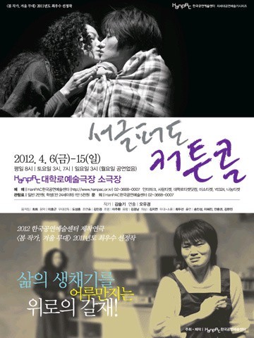 그러던 중 젊은 남자의 아이를 가진 우람의 엄마 ‘정란’이 임신한 채 ‘커튼콜’을 찾고, 반지와 정란은 카페에 남겨진 대본을 통해 연극놀이를 하며 서로 비슷한 처지임을 인식하게 된다. 이후 우람의 일방적이면서도 강압적인 사랑표현에 상처받은 반지를 정란이 감싸주며 둘은 둘 만이 해줄 수 있는 위로를 통해 삶의 의지를 다진다. 작품이 뜻하고자 하는 바는 관객에게 쉽게 어필된다. 작품 구조가 단순하고, 후반부 관객들의 귀에 쏙쏙 들어오는 대사들은 연극이 말하고자 하는 바를 명확하게 전달한다. 특히 연극의 커튼콜에 비유한 “누구나 사는 건 이렇게 절박한데, 행복이나 이해를 바랄 수는 없어도 서글픈 인생에 ‘수고했다’ 박수 받을 수 있을까요?”라는 대사가 인상 깊다. 하지만 작가의 첫 작품이어서 일까?<서글퍼도 커튼콜>은 대중연극으로는 자리매김할 수 없는 분명한 한계점도 드러냈다.