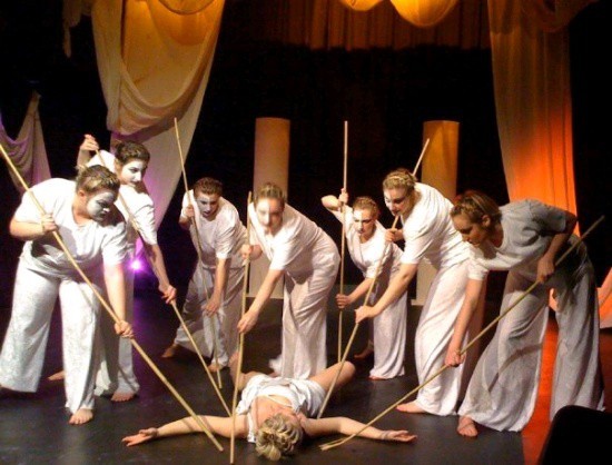 d. 합창의 역할이 줄고, 대사의 비중이 높아졌다. 토론 경연장 혹은 법정의 변론 장으로 변했다. 예술적 아우라를 상실했다. (F. 니체)