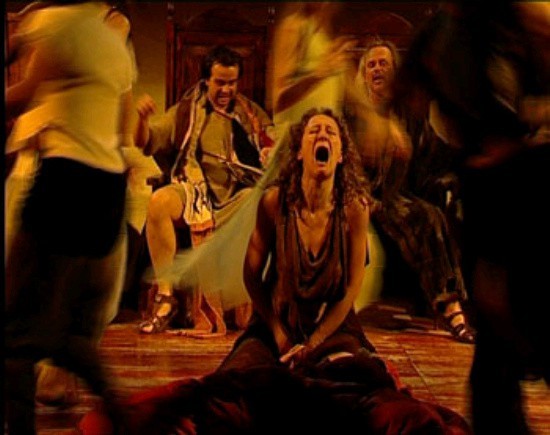 b. 아이기스토스-클뤼타이메스트라: 집안의 저주 때문이 아니라 ‘폭군’의 상징으로서 등장한다. 어머니 살해 후에도 어떠한 회한도 없다. 소포클레스의<엘렉트라>의 마지막 코러스와는 사뭇 다르다. “오오 아트레우스의 씨앗이여, / 그대는 얼마나 많은 고통 끝에 / 얼마나 힘들게 자유에 닿았는가! / 그 자유는 오늘의 돌진으로 완성되었도다.”