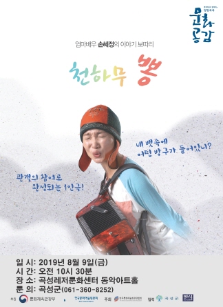 사람과 사람이 만나 나누던 옛이야기의 따스함과 정겨움을 요즘 아이들이 얼마나 느끼고 있을까? 화려한 장난감과 볼거리 속에서 아이들의 상상력은 더욱 가난해질 수 밖에 없다. 간단한 소품과 움직임만 가지고도 다양한 인물로 변화되는 1인극의 연극적 상상력과 눈과 눈을 마주치며 펼치는 살아있는 소통 속에서 아이들은 자신 안에서 상상력이 무한히 뛰어 노는 것을 경험하게 된다. 이 작품의 작가이자 배우로 출연하는 손혜정의 1인극이다.