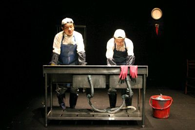 대형 식당 설거지 실에서 근무하는 남자1과 2.