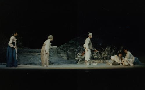 역사는 기록으로 고정되거나 박물관 유리 저편에 유물로 보존되는 것은 아닐 것이다. 한 개인의 과거도 그렇지만, 공동체의 운명으로서의 역사는 망각되어질 수 있는 기억이 아니라, 끊임없이 현재형으로 살아 있어야 하며 미래 투사적이 되어야 할 것이다. 더구나 굴욕과 오욕으로 점철된 얼룩진 굽이 일수록, 일상의 안락과 욕망으로 굳어있는 우리의 각피를 사납게 긁는 질문이 되어야 하는것이다. 구한말, 안으로 오백년 조선왕조를 지탱하던 유교적 가치관이 스스로의 모순을 드러내고, 밖으로는 서구 열강의 동양에 대한 욕망과 일제의 단계적 침략으로 극도의 혼란에 빠졌던 시기가 이 연극의 배경이 된다. 무너져가는 유교 윤리와 신분 질서의 잔영을 붙잡으려는 양반들과 새시대의 여명을 어렴풋이 자각하고 몸으로 부딪히던 평민들은, 일제라는 공동의 적을 맞이하여 나름대로의 방법으로 저항하게 된다. 일본군의 무차별한 학살과 방화로 산으로 쫓겨난 반가의 고부와 그들의 여비, 평민의 모녀인 다섯 여자와 의병으로 나선 한 소년이 엮어내는 무대는, 우리의 아프고 부끄러운 상처를 오늘의 우리에게 생생하게 보여 주면서 우리를 고통스럽게 만든다는데 그 의의가 있다. '일본사람’이나 '일본인’보다는 ‘왜놈’이나 ‘쪽바리’라 부르는 편이 우리에게 훨씬 자연스러웠던 “일본”은 다시 우리 앞에 새로운 모습을 갖추고 새로운 형태의 질문으로 닥쳐들고 있다. 이 물결을 우리는 일방적인 구호나 감정으로 해소하기보다는 확고한 인식을 통한 지혜로운 극복으로 맞아야 할 것이다. "산국”의 무대는 우리의 역사에서 가장 아프고 부끄러웠던 시기의 이야기이기에 몇 잔의 커피와 엘리베이터의 욕망으로 굳어있는 오늘의 우리에게 부단히 되물어야 하는 질문이 되는 것이다.