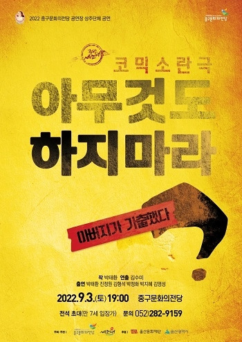 고민해보고 싶다"며 연극의 작의를 밝힌다. 코믹소란극이란 부제의 이 작품은