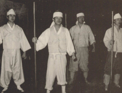죽창을 들고 관군과 맞서 싸우는 동네 사람들의 귓전에 애기장수 북의 울림이